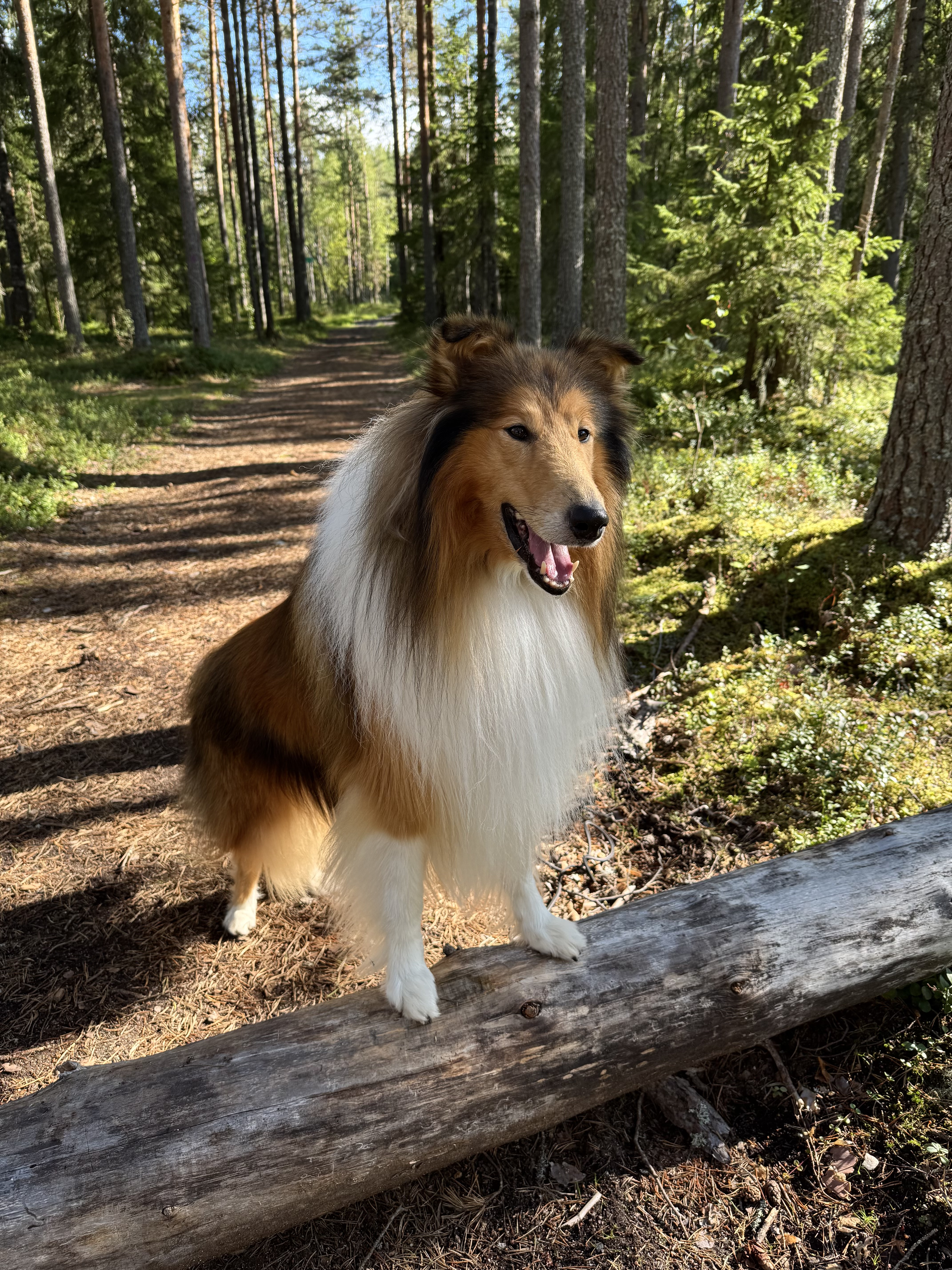 Muutamien näyttelyiden lisäksi on harjoiteltu omaksi iloksi tokoa kotioloissa, käyty treeneissä hallilla sekä harrastetaan pitkiä vaelluslenkkejä luonnossa. Mauno on erittäin nopea oppimaan ja innokas kaikenlaiseen toimintaan. Tykkää myös välillä käyttää ääntään oikein innostuessaan tai turhautuessaan :)